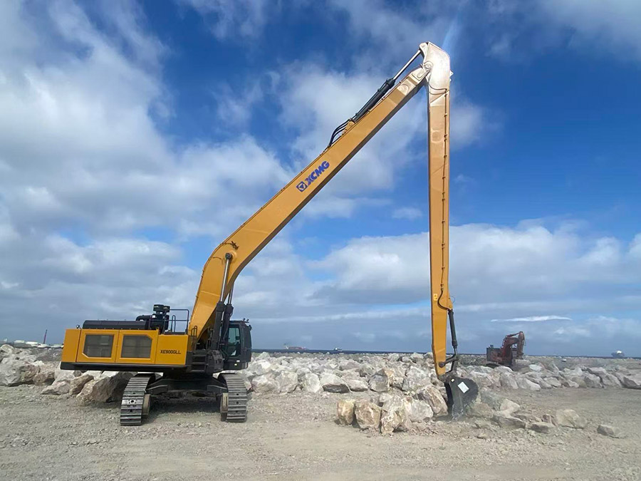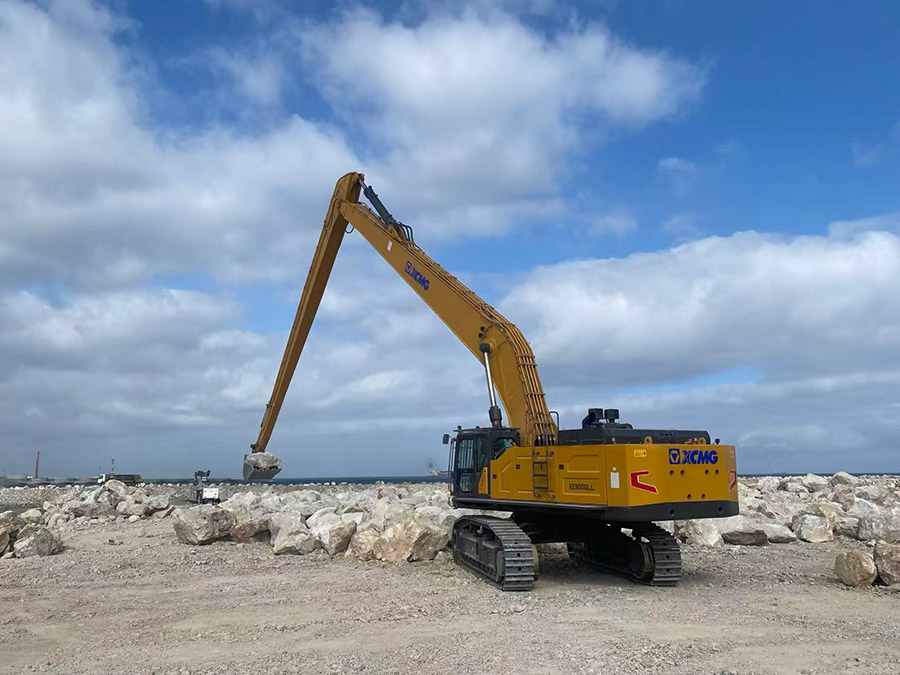 The Port of Tanger Med in northern Morocco stands as a modern maritime gateway connecting Africa, Europe and global trade. With a container-handling capacity of about nine million TEUs and a 3,600-metre quay line dredged to around 18 metres depth, the complex supports large-scale trans-shipment and industrial logistics. Against this backdrop, deploying the XCMG XE900GLL long-reach excavator at Tanger Med offers strategic value.