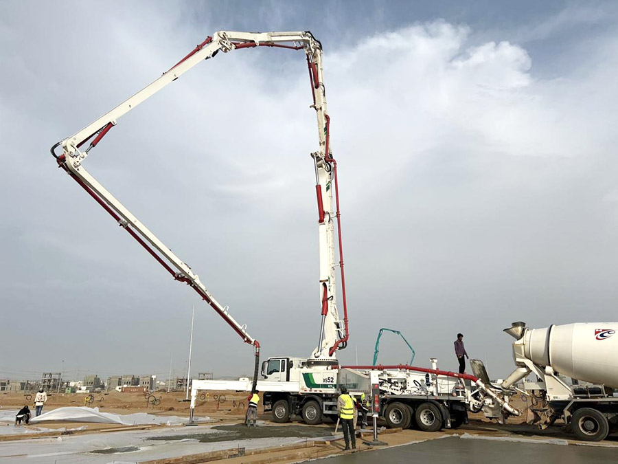 At the HAIF project in Saudi Arabia, the XCMG XS52Z5A concrete pump truck has been deployed to support large-scale construction works. As part of a fleet including cranes, forklifts, and aerial platforms, the pump truck has delivered high-efficiency and stable performance. With full-time on-site support from XCMG engineers, the equipment has earned high praise from Haif, one of Saudi Arabia’s top 10 contractors, for its reliability and strong service capability, contributing to the successful progress of key national infrastructure projects.